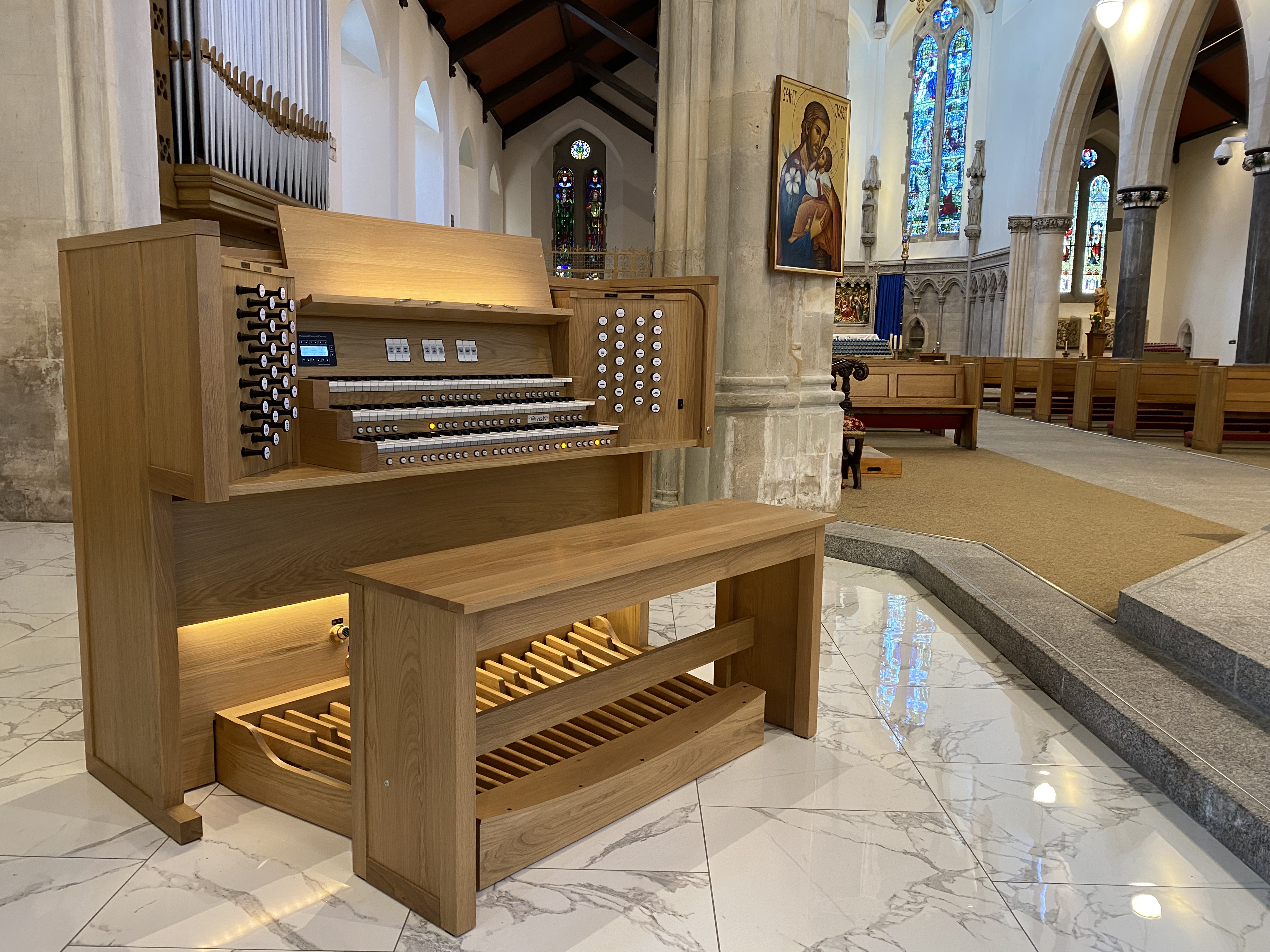 With greatly extended audio and a radically new generator system, allied with finely crafted drawstop consoles signal a major advance. Voicing is warm and unashamedly British but in addition to the English stop list, there are three alternative specifications: Baroque, French Romantic and Dutch, offering the organist truly versatile potential to register music from all periods and genres: literally four organs in one console.